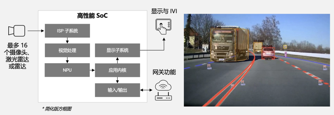 通过在单颗 SoC 内整合感知处理、AI 推理、网关与显示等功能,TDA5 支持跨域融合架构,降低系统复杂度,同时在能效上实现超过 24 TOPS/W 的水平。