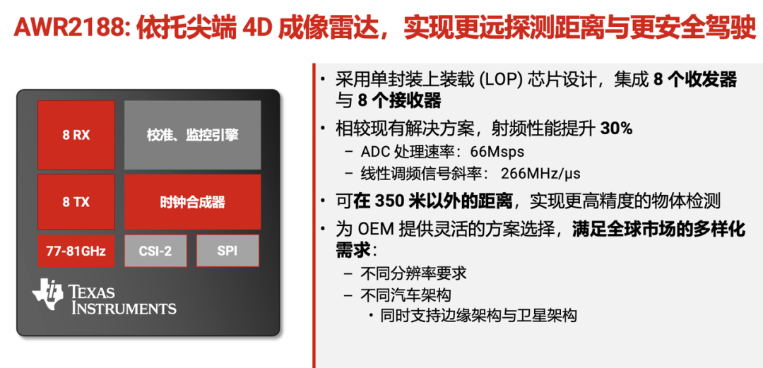 在感知层面,TI 将重点放在 4D 成像雷达的系统级升级上。